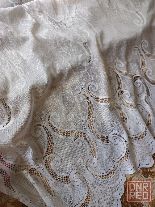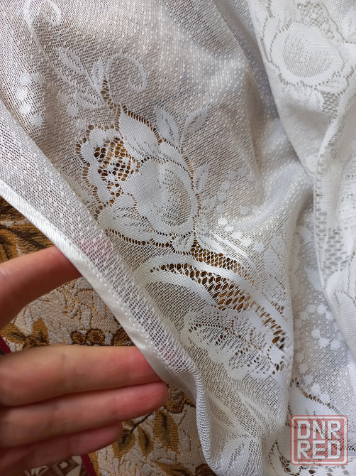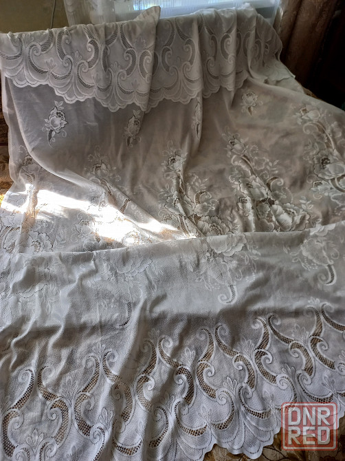 гардина довольно увесистая, уже с ламбрекеном на шторной ленте, края изделия обработаны.