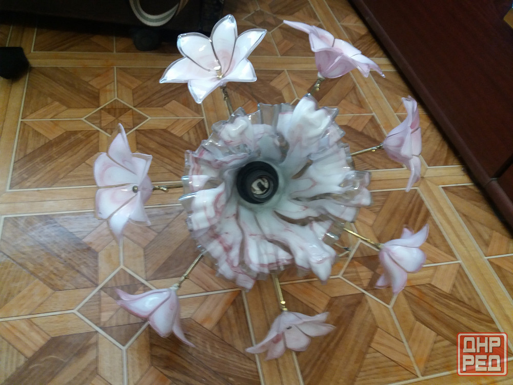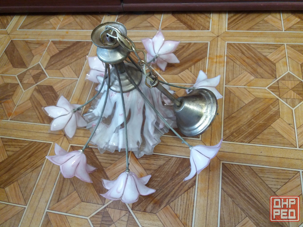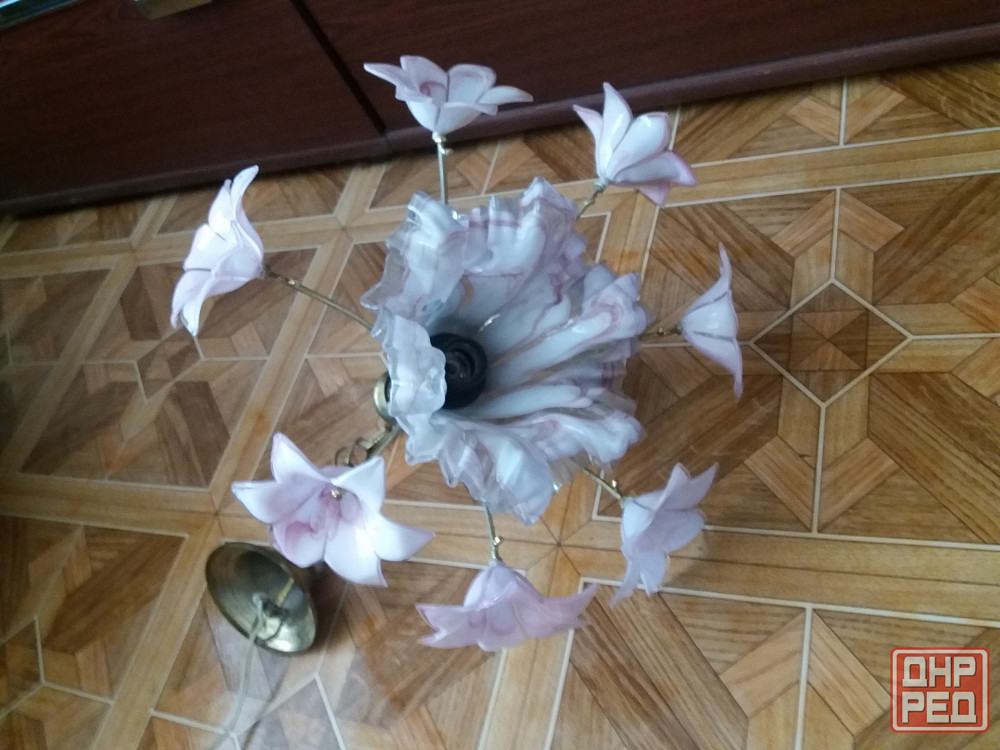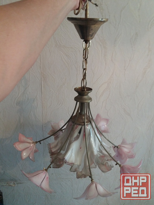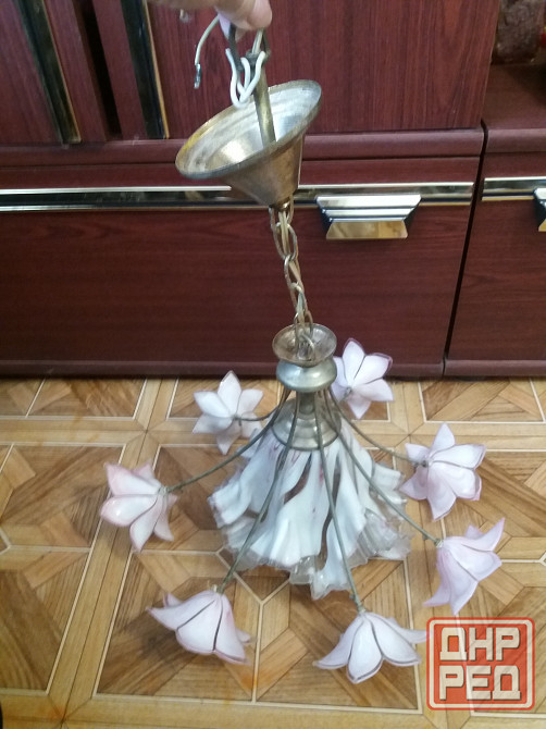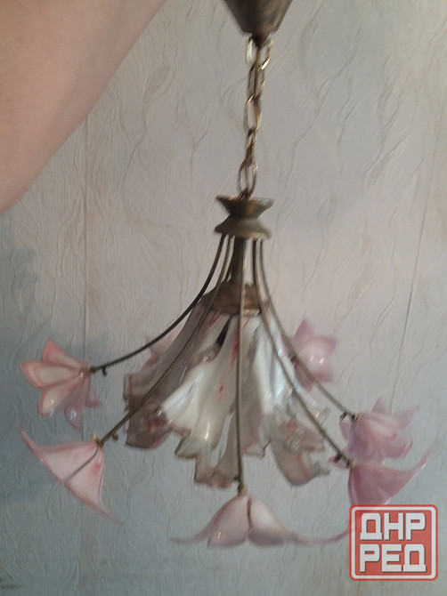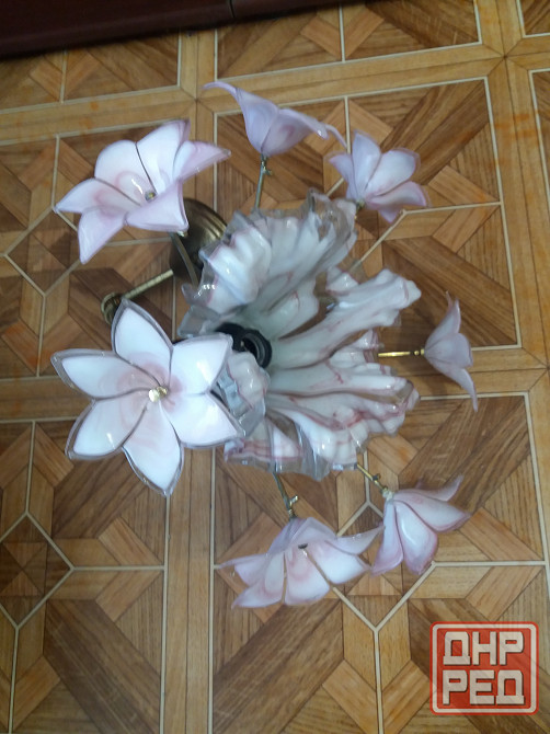 продам люстру светильник на один рожок. цоколь для лвмпочки стандартный. стеклянные цветы и плафон без трещин нежного бело-розового цвета. смотрите все мои объявления. звоните на фен 529 9745. есть телеграм.
