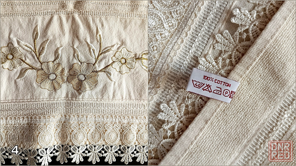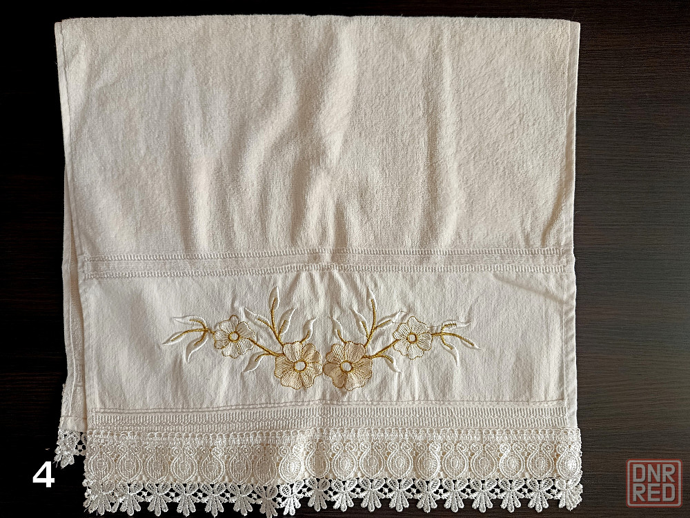 4. махровое полотенце молочного цвета с вышивкой и красивым кружевом. хлопок 100%. размер: 50х90 см.