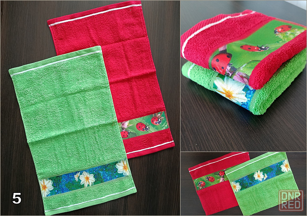 5. махровые полотенца для рук с цветочным бордюром красного и зеленого цвета. хлопок 100%. размер: 29х48 см
