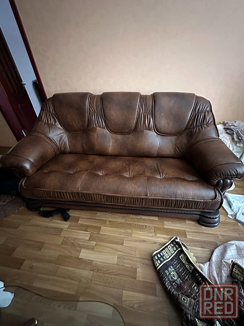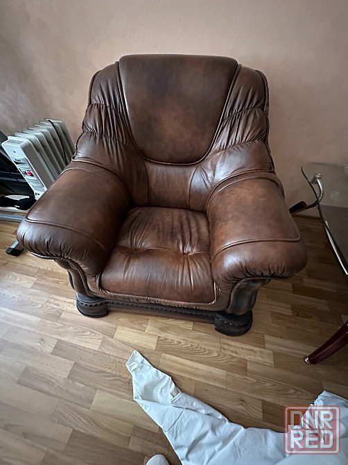 кожаная натуральная мягкая мебель диван два кресла в отличном состоянии.