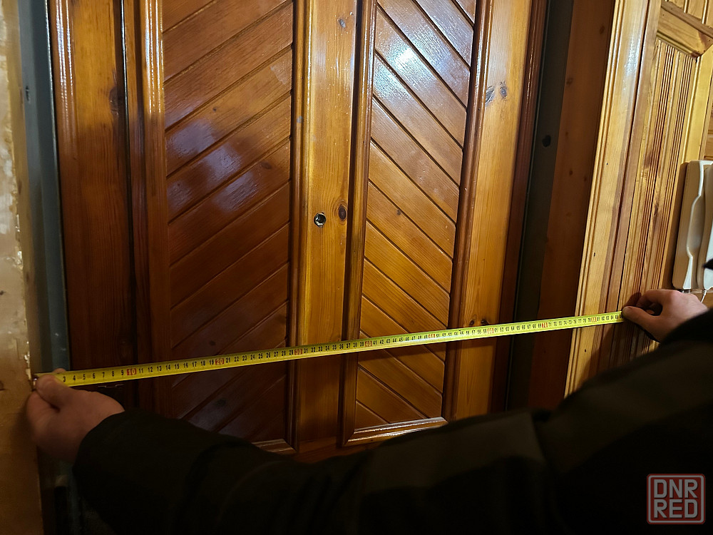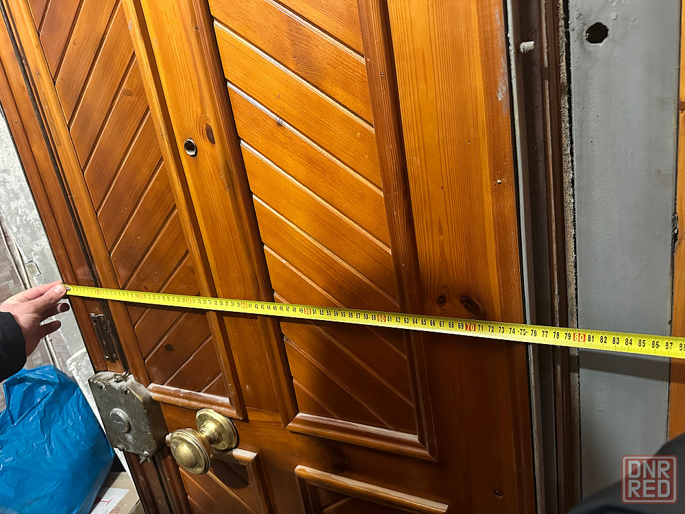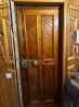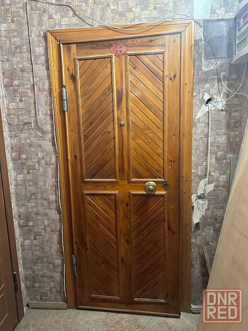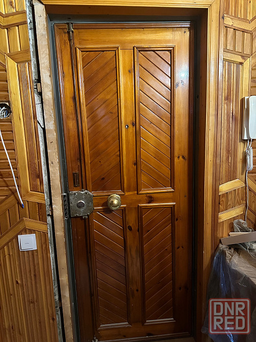 входная дверь тяжелая, с рабочим замком, обшита натуральным деревом