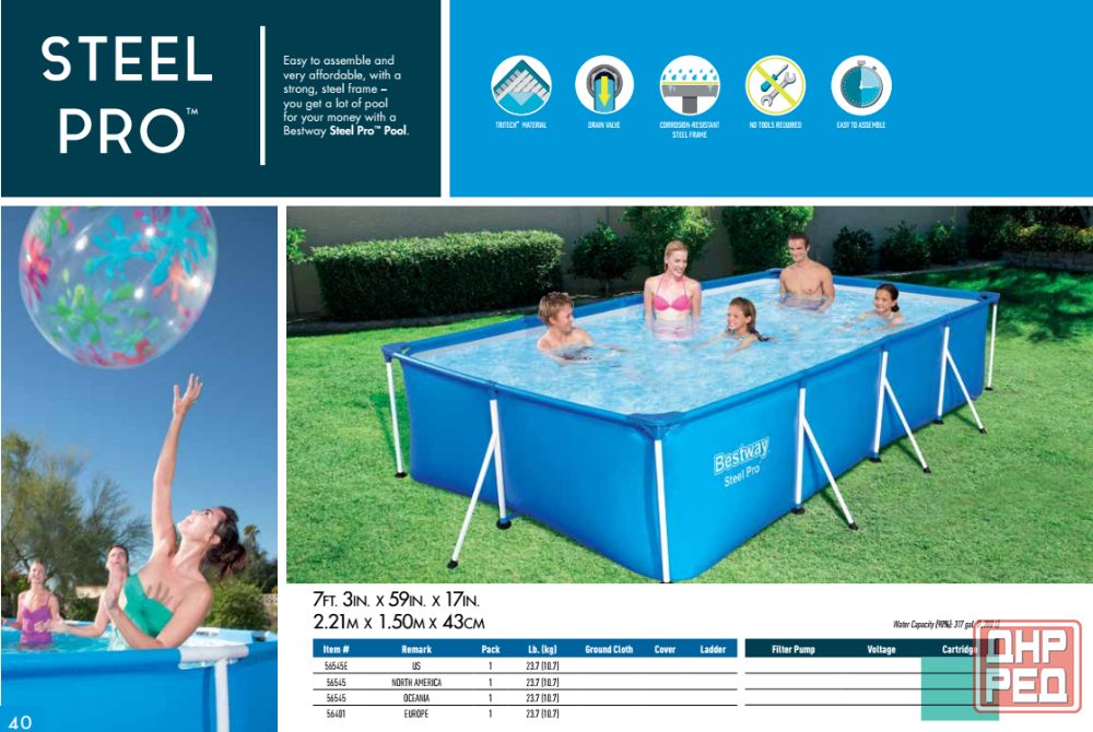 с каркасными прямоугольными бассейнами 56411 от известного производителя bestway вы создадите прекрасный и незабываемый отдых в кругу семьи или друзей. они быстро и легко устанавливаются, не займут у вас много сил и времени. бассейн bestway 56411 станет отличным приобретением для вас, ваших детей и близких.