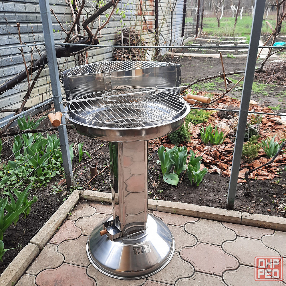 продам барбекю из нержавейки.  новый. высота 83 см. ширина чаши-53 см. есть решётка для мяса и гриль. все из нержавейки.  цена 5000 руб без торга.отвечу на  все вопросы по телефону донецк, буденновский район +79494379..📲