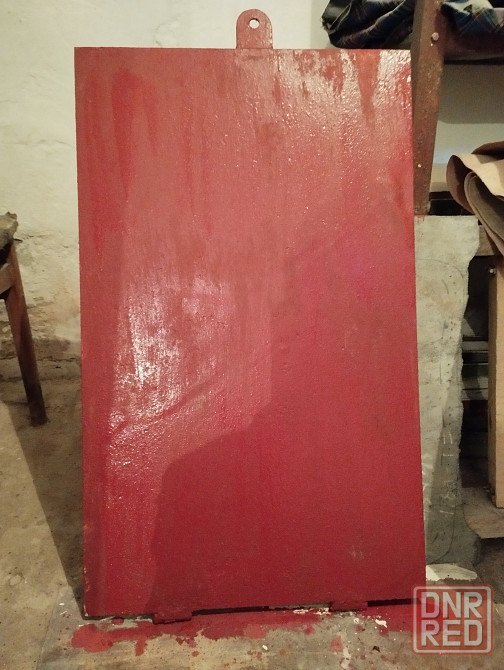 размеры дл. 800мм. ш. 480мм. толщина.3мм. с одной стороны приварены 2 навеса. с другой стороны на сварке ухо с отверствием под замок.