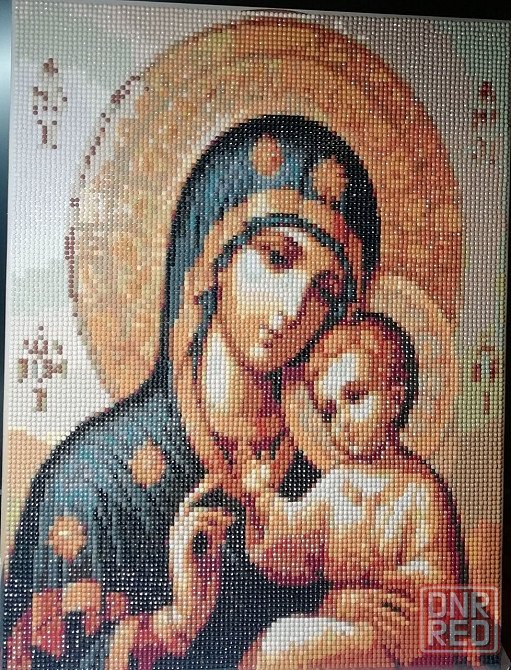 алмазная мозаика с выкладкой из страз с отшлифованными гранями на подрамнике из дерева "икона богоматерь". размер готовой работы вышивки стразами – 40х30 см. полная выкладка из 36 цветов.