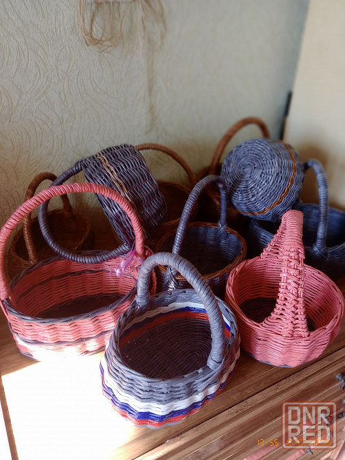 корзины в точности как на фото. цены от 1000 до 1500р. за шт. высота 12-14 см. круглые диаметр 16-22см.