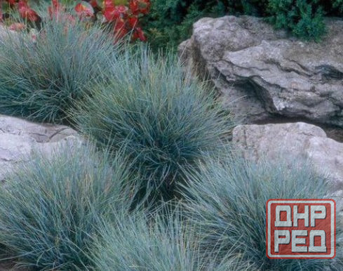 овсяница сизая. большие куртины. можно легко размножить и получить к осени много кустиков. в продаже небольшое количество. красиво смотрится с вечнозелёными растениями.
