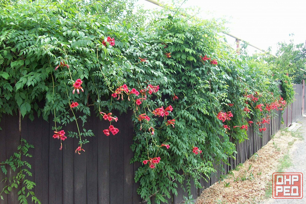 есть кампсис или тэкома, красивый вьющийся цветок-лиана. очень красиво цветёт.