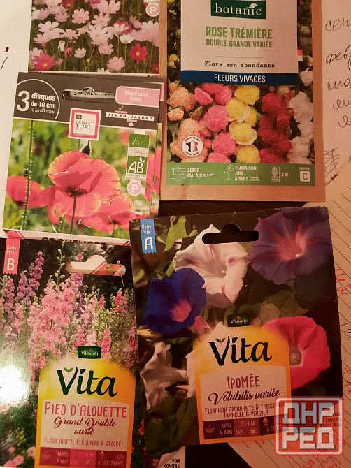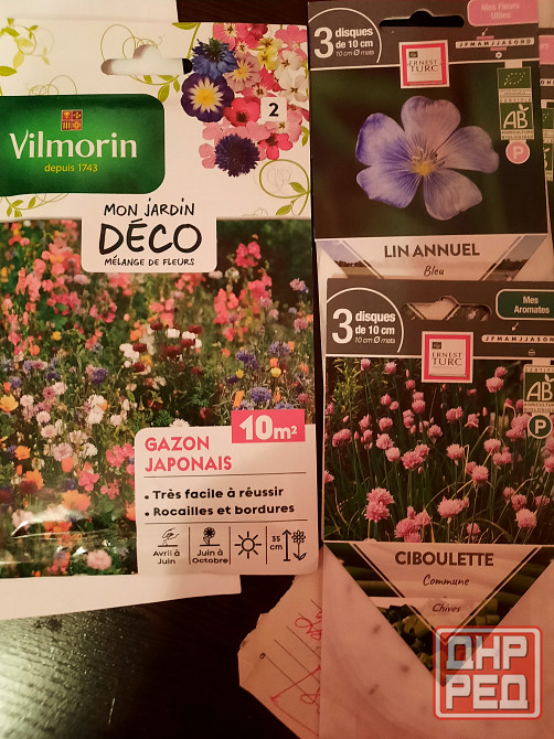 семена цветов производство франция маки2шт, голубой лен2шт, космос2шт декоративный лук1шт по 50руб вьюнок2шт и анютки2шт фирмы vita поj 70руб. японский газон2шт и многолетняя розочка1шт по 100руб