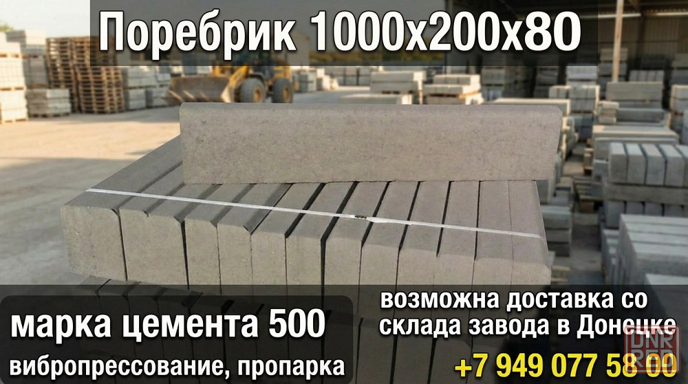 поребрик 1000×200×80 мм оптом со склада завода донецк. стабильные объёмы, оперативная отгрузка, возможна помощь в доставке и выгрузке на объект. работаем с бригадами — удобные условия. +79490775..📲