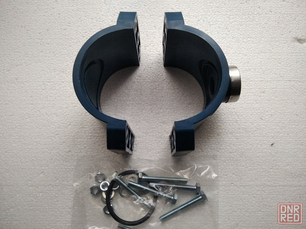 новый пластиковый хомут-врезка на подающую трубу 110 ммпластик/сталь,с выводом под диаметр 1".