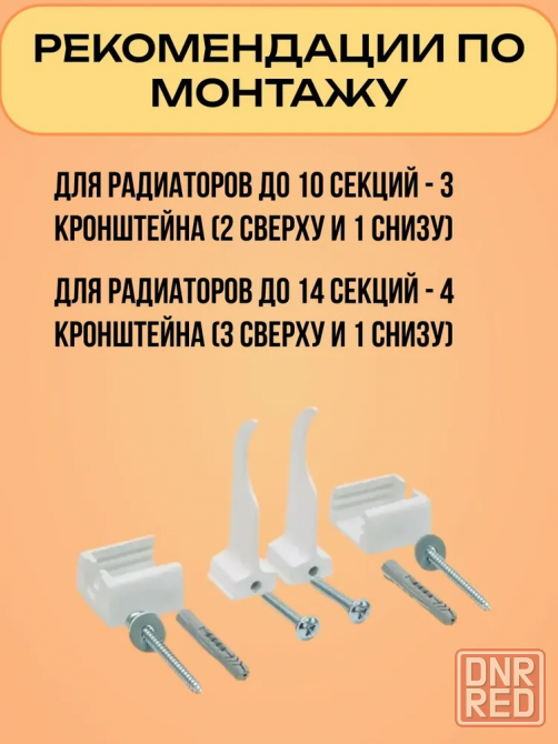 рекомендуется при монтаже радиаторов с числом секций до 10 использовать не менее 3 кронштейнов 2 сверху, 1 снизу, до 14 - не менее 4 3 сверху, 1 снизу.