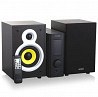 чистое звучание как низких, так и высоких частот достигается за счет динамиков из композитного материала, которые превосходят бумажные как по акустическим, так и по качественным параметрам. для достижения наиболее чистого звука корпус модели выполнен из дерева, а внутри корпуса установлен войлочный поглотитель. систему можно установить рядом с монитором, телевизором и другой аппаратурой, так как магнитное экранирование динамиков препятствует возникновению помех. внешний усилитель повышает качество акустики. соединительный кабель толщиной 1,2 мм2 позволяет точно передавать звуковой сигнал.
