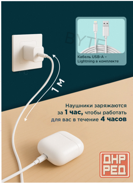 комплектация: наушники беспроводные air r1 rexant – 1 шт., зарядный кабель usb-а – lightning – 1 шт., руководство по эксплуатации – 1 шт.