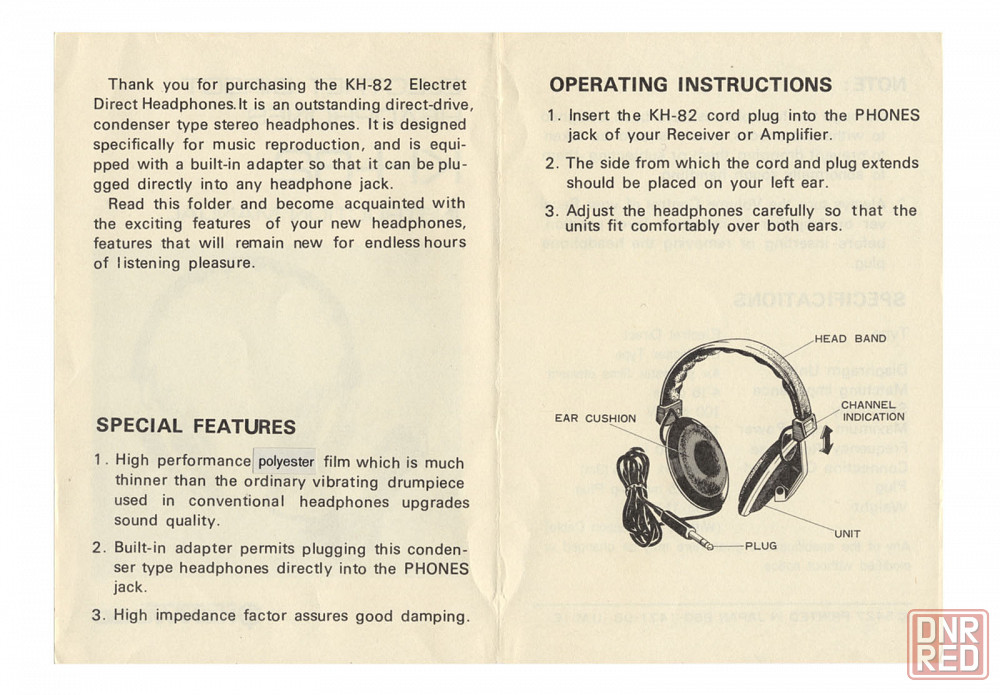 Наушники электретные KENWOOD KH-82 (made in Japan)