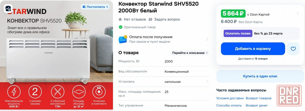 продам конвектор starwind shv5520