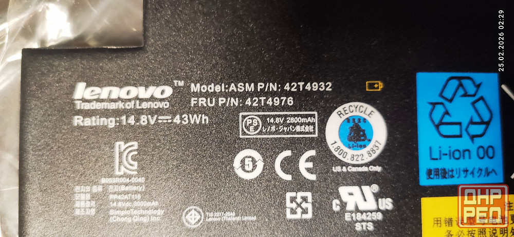 Аккумулятор 42T4932 2900mAh, 14.8v (Lenovo E220s) ₽ 2 000