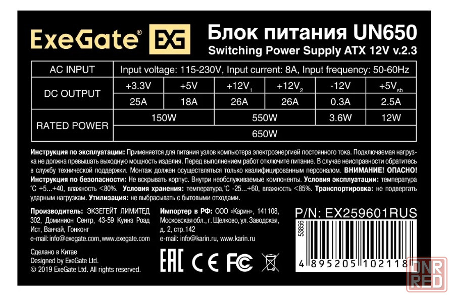 блок питания 650w exegate un650