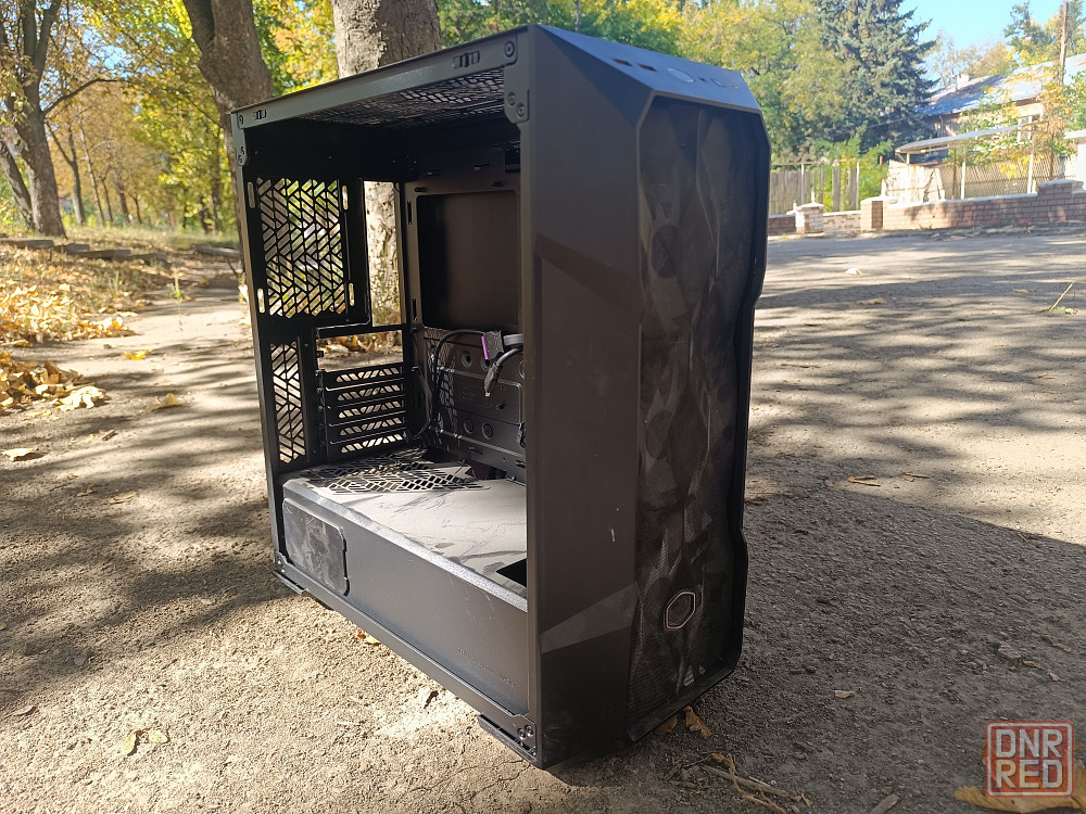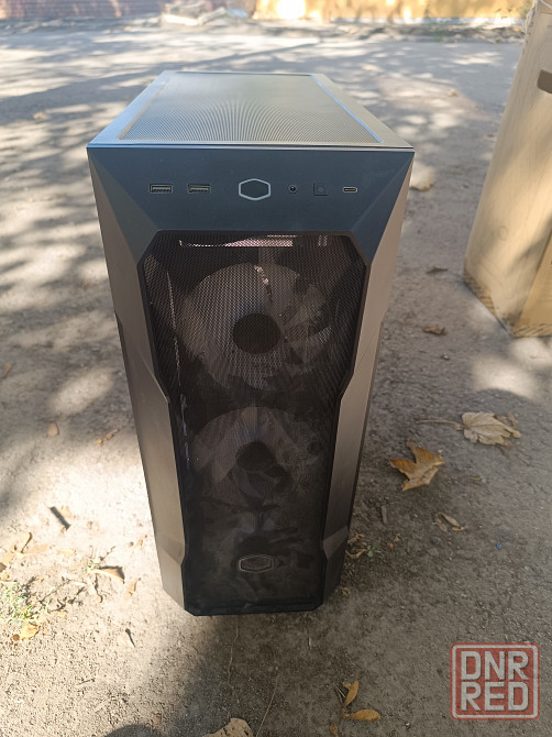 шикарный, большой корпус с родными кулерами и argb контроллером. но без стекла и металлических деталей которые крепились к стеклу. таким уже достался. пыльный как на фото.