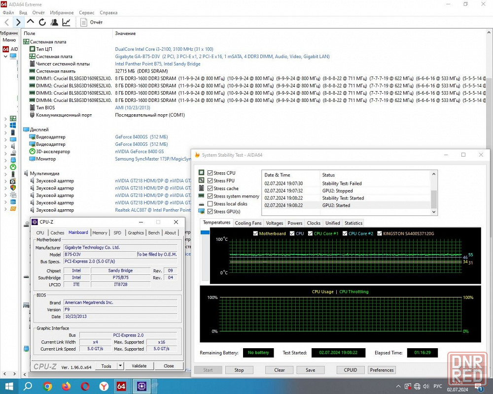 начала еще и отключаться во время работы. помог заново запустить плату только полный сброс биос.