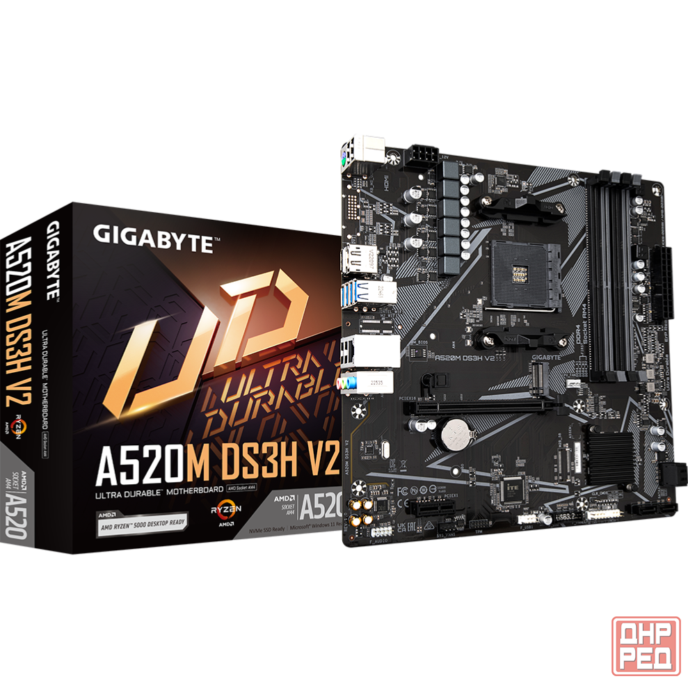 mb sam4 gigabyte a520m ds3h v2, socket am4, amd a520, 4xddr4-3200, hdmi+dp, 1xpci-ex16, 1xpci-ex1, 4xsata3raid 0/1/10, 1xm.2, 8 ch audio, glan, 4+2xusb2.0, 4+2