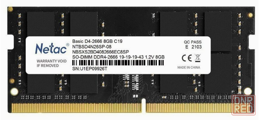 оперативная память so-dimm ddr4 netac 8гб 2666 мгц cl19 ntbsd4n26sp-08