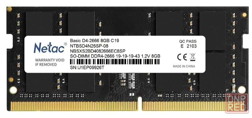 оперативная память so-dimm ddr4 netac 8гб 2666 мгц cl19 ntbsd4n26sp-08