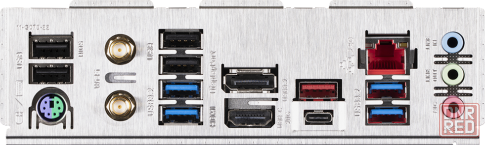 разъемы на задней панели - displayport, hdmi, usb 3.2 gen2x2 type-c, 4 x usb 2.0, 4 x usb 3.2 gen1, ps/2, rj-45, usb 3.2 gen2