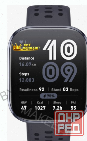 функцииизмерения: количество шагов, потраченные калории, продолжительность и качество сна, пройденное расстояние, пульс, уровень кислорода в крови, уровень стресса и восстановление