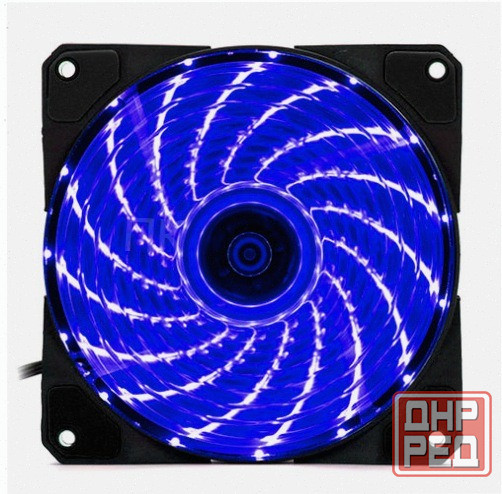 корпус вентилятора прозрачный с синей подсветкой.