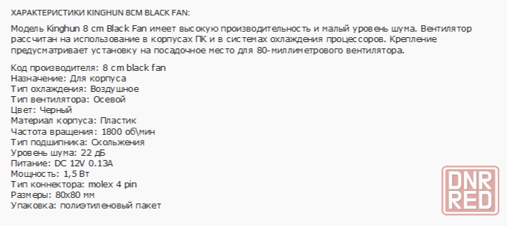 характеристики detech 8cm black fan:
