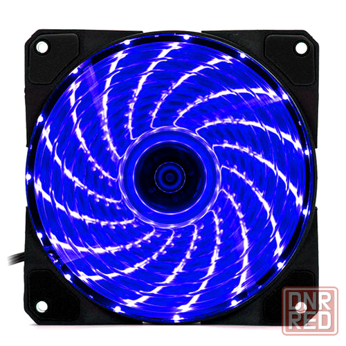 корпус вентилятора прозрачный с синей подсветкой.