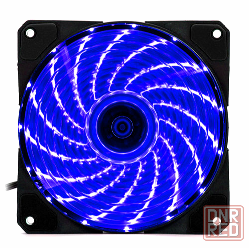 корпус вентилятора прозрачный с синей подсветкой.
