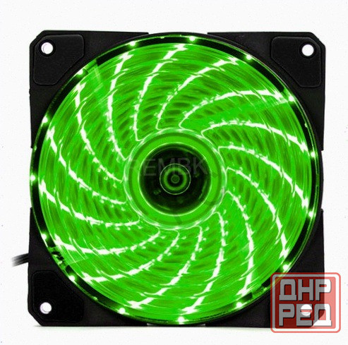 корпус вентилятора прозрачный с зеленой подсветкой.