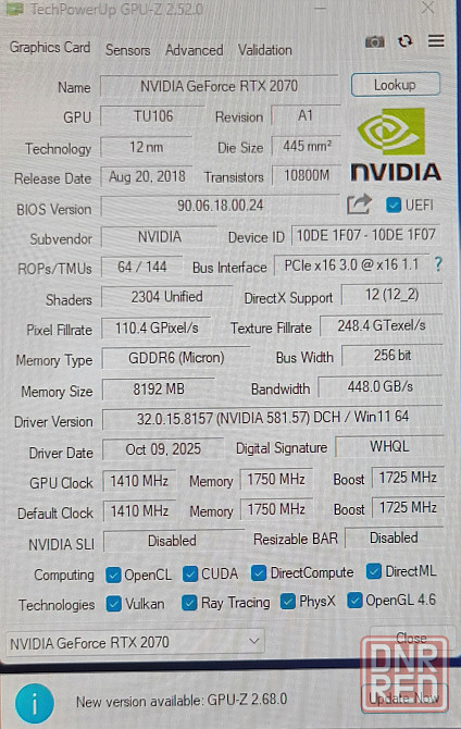 Видеокарта RTX 2070
