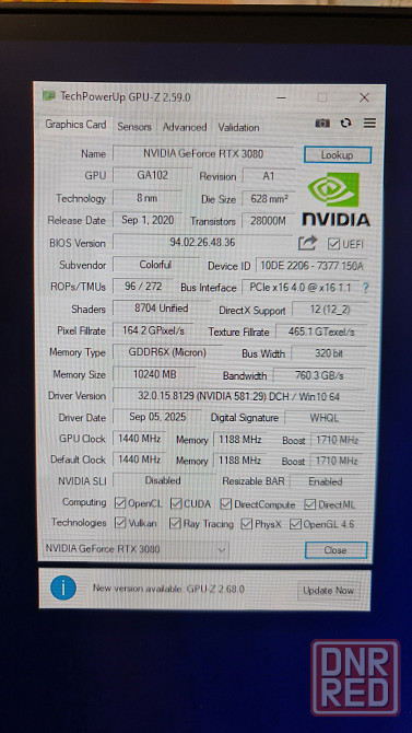 видеокарта rtx 3080 colorful, карта в идеальном состоянии, использовалась в домашнем компьютере температуры нормальные. отлично подходит для современных игр лучше новых карт rtx 4060,4070,5060 rx 9600, 9600x.