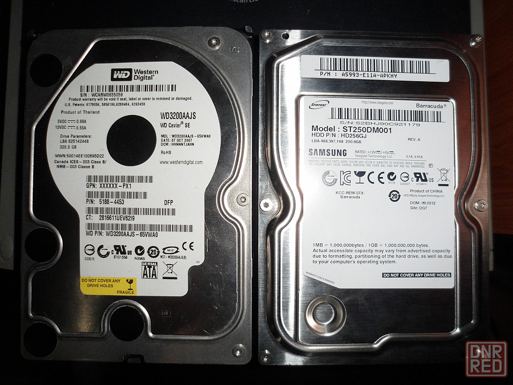 два жестких диска размером 3,5. вся информация о них на фото. достаточно свежие, по часам наработки они в "молодости" - им ещё пахать и пахать. никаких бэдов, щелчков, треска или ошибок в работе. лежали в запасе лет пять, на экстренный случай.