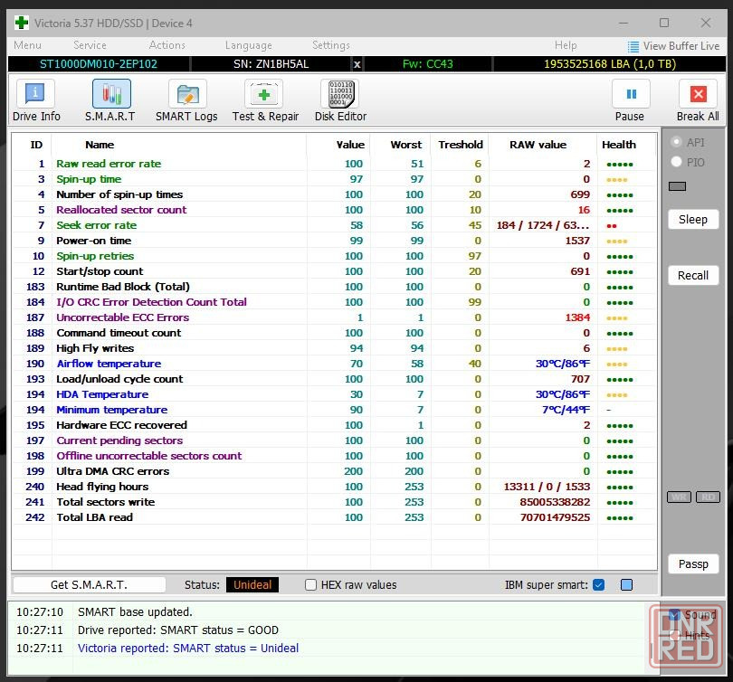 жесткий диск 1 тб имеет 16 переназначенных секторов.
