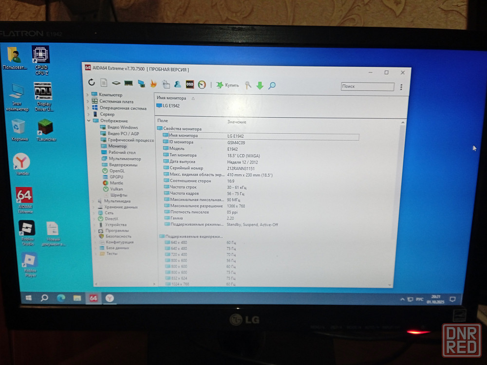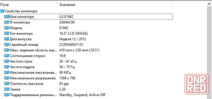 информация и мониторе: