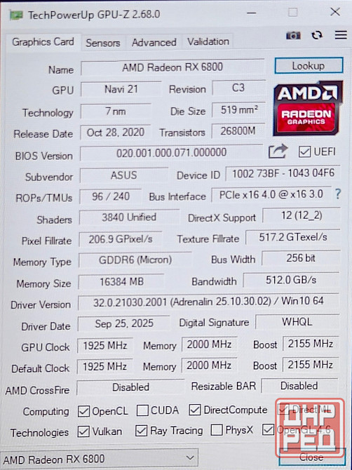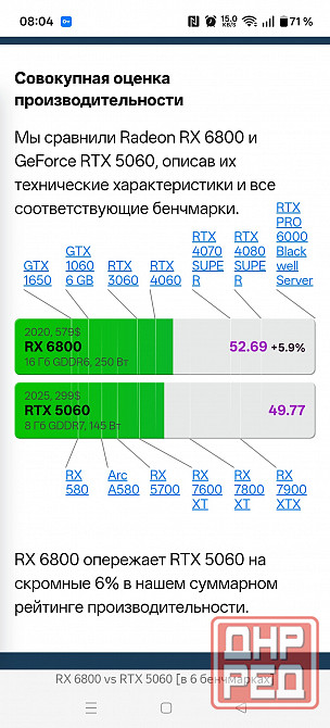 видеокарта asus tuf gaming rx 6800 с 16 гб видеопамяти находится в идеальном состоянии и обладает полным комплектом аксессуаров. по производительности она превосходит nvidia geforce rtx 5060, обеспечивая достаточную мощность для работы с разрешением 2k и 4k. система охлаждения видеокарты позволяет поддерживать низкую температуру даже при высоких нагрузках.