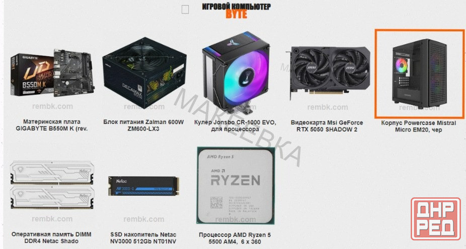 данный компьютер состоит из следующих комплектующих:
