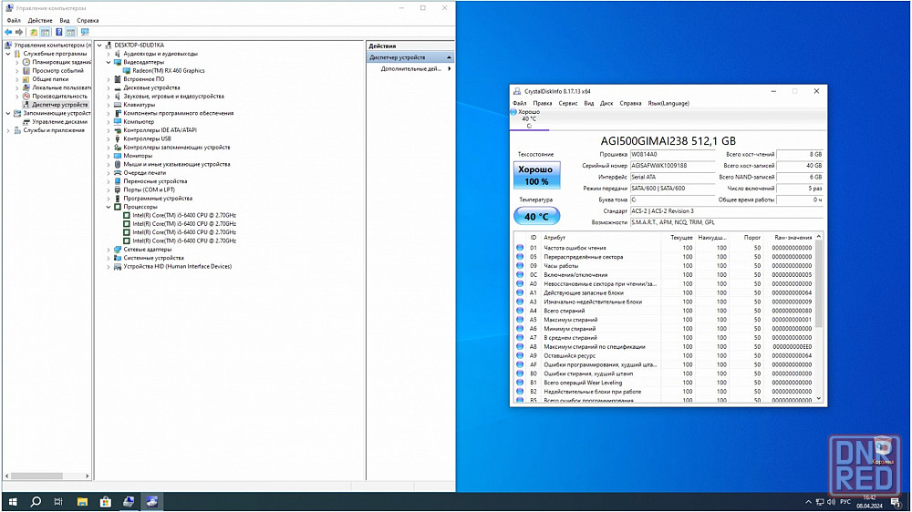 срок гарантии на комплектующие до 12 месяцев, установлена windows 10.