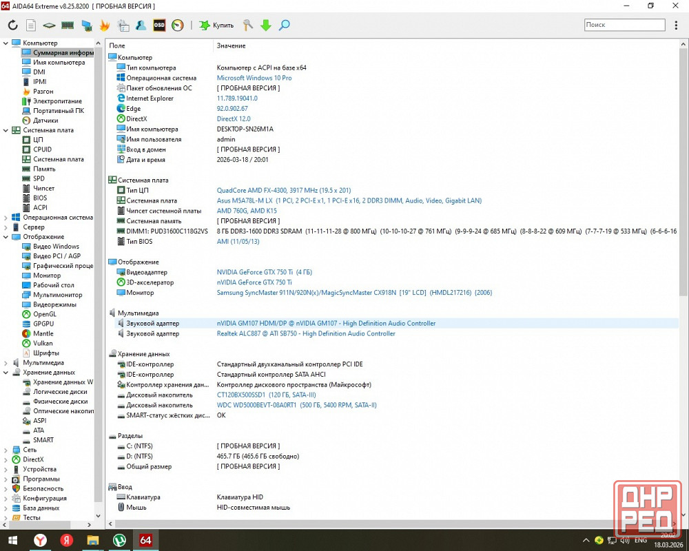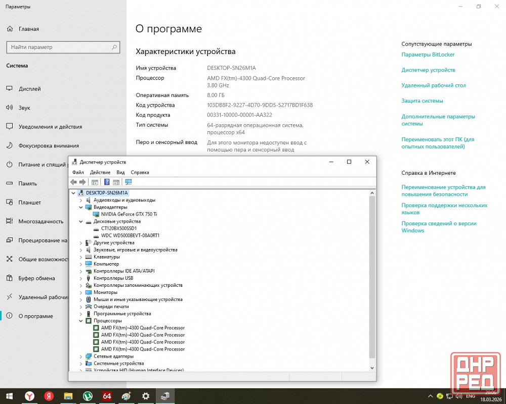материнская плата асус m5a78l-mx fx 4300 4000*4 8мб кеш ge force 750ti 4gb gigabite windforce 8gb 1600 ddr3 ssd 120gb crucial bx500 ct120bx500ssd1 + 500 gb hdd western digital. 1 слот памяти свободен, в будущем можно добавить.