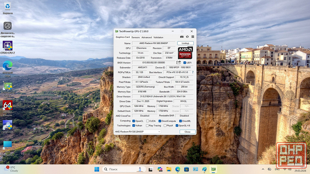 - видеокарта amd radeon rx 580, память 8 гб, частота ядра 1284 мгц, памяти 7000мгц по производительности почти на 40% лучше, чем geforce gtx 1050 ti и на 12% чем gtx 1650