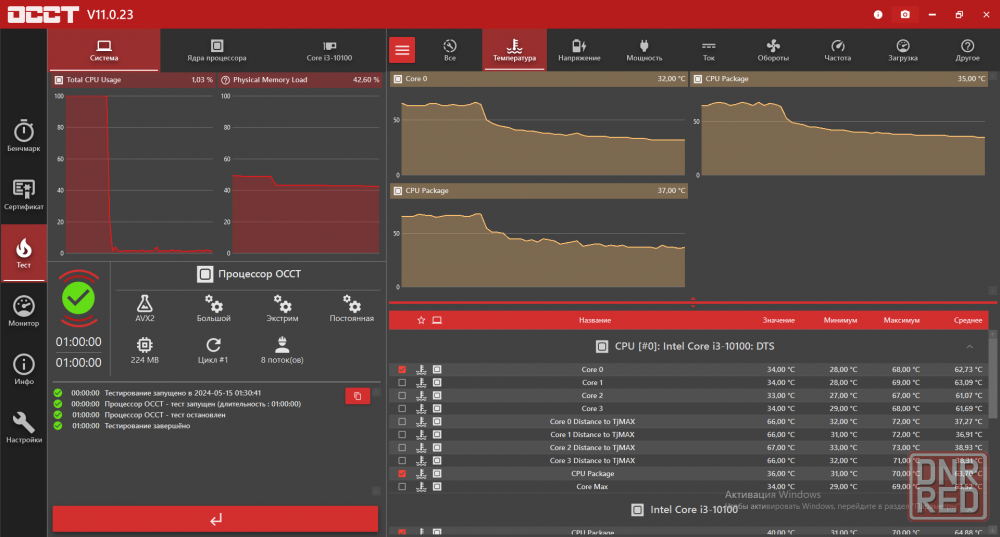прикреплены тесты ssd диска, так как использовался только для тестирования, также тестирование на температуру, и версия операционной системы.