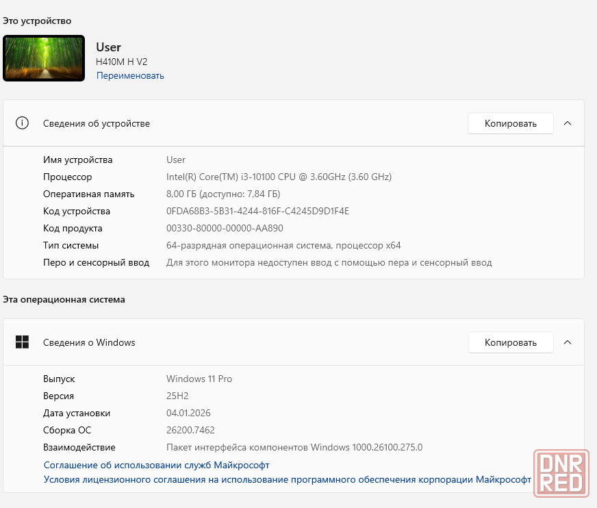 на компьютере установлена система windows 11 pro 25h2