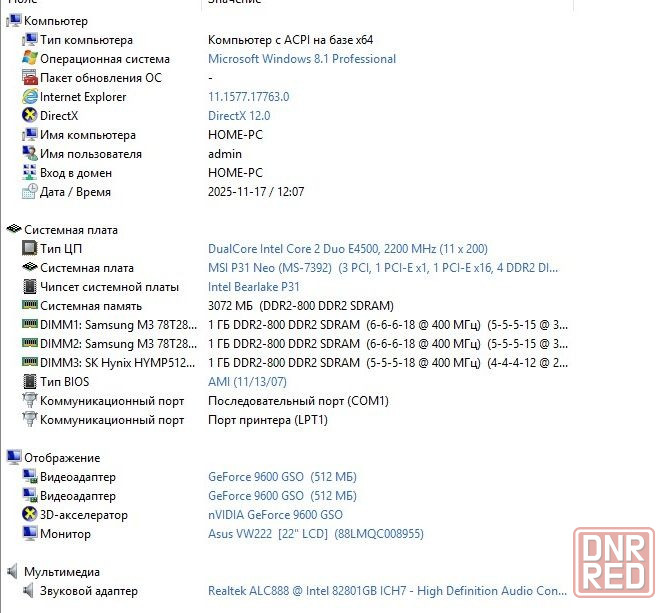 системный блок пк б\у материнская плата msi p31 neo ms-7392 - 700 рублей с процессором dualcore intel core 2 duj e4500 2200 mnz и кулером! оперативная память ддр-2 - три планки по 1 гб samsung n3 - 300 рублей блок питания detech jx-h450-a 450w - 250 рублей! видеокарта geforce 9600 gso 512 mб - 500 рублей! жесткий диск ide - 80 гб и корпус чисто для проверки пк! пк продается без кабелей! кабели кабель питания и кабель подключения к видеокарте, мышка, клавиатура, колонки, монитор могу продать за отдельную плату!