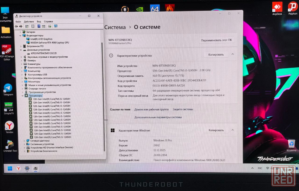 thunderobot 911 x wild hunter g2pro /15.6 fullhd ips 165гц //intel core i5-12450h 8ядер ,12потоков 2,0-4,4ггц/ 16гб ddr4/ssd 512gb nvme /nvidia rtx4060 8gb gddr6 + intel uhd graphics/ подсветка клавиатуры , hdmi usb3.1 - 3шт, type-c-1шт. bluetooth 5.2, wi-fi 6 /акб до 3 часов/win11/ полный комплект, 30 дней наработки
