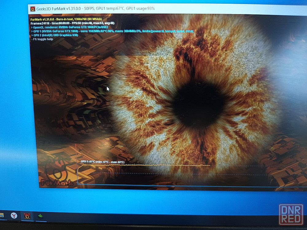 *видеокарта дискретная: nvidia geforce gtx 1050- 4 гб своей видеопамяти, стабильные 52-53 fps в стресс-тесте furmark в стандартном hd разрешении 68 градусов 9 минут теста